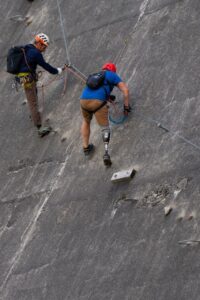 Bergsteigen ist hier nicht nur Sport, sondern ein wirksamestherapeutisches Instrument. Die Eroberung eines Gipfels wird zurMetapher für das Überwinden innerer Hürden und gibt den Glauben an die eigene Kraft zurück. Der Grundsatz der Seilschaft lehrt auf direkteWeise Vertrauen und gegenseitige Unterstützung – eine Erfahrung, die sich in einer psychologischen Praxis nicht reproduzieren lässt.